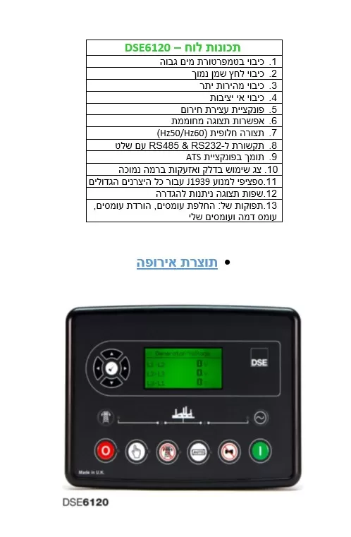 כולל לוח בקרה DEEPSEA תוצרת אירופה